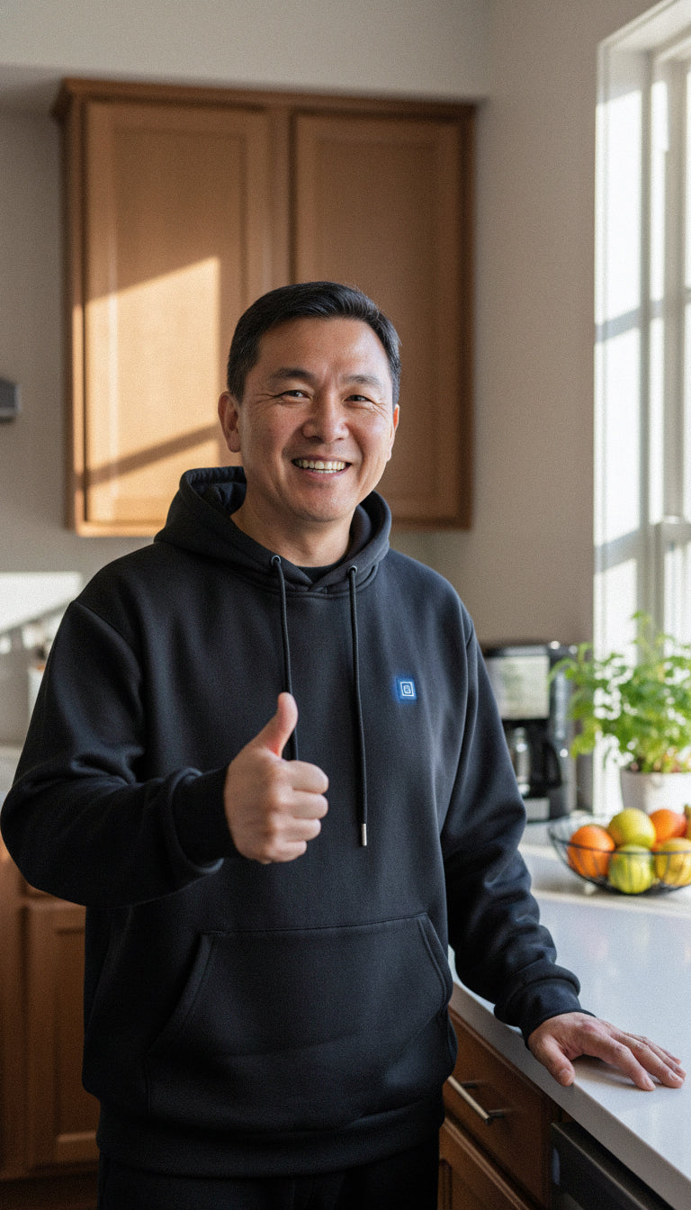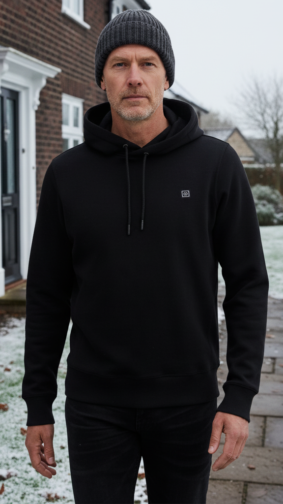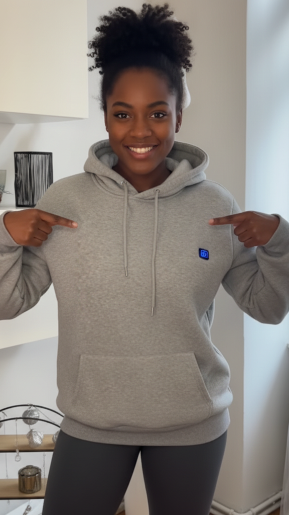 Thermorra is a heated hoodie with built-in heating elements. It runs on a rechargeable battery that powers the heating system, providing adjustable warmth for up to 8 hours. Simply turn it on to stay warm wherever you are.